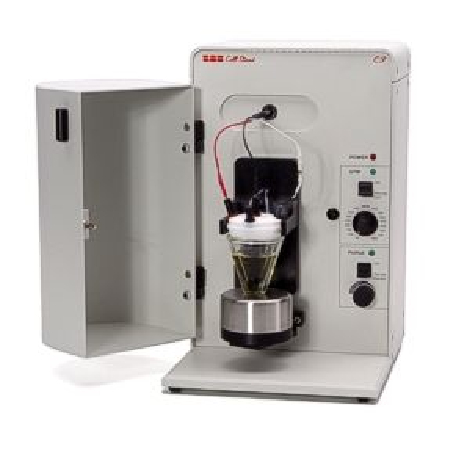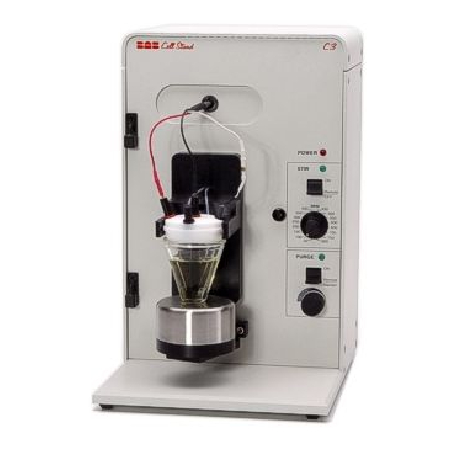 The cell can be enclosed in the included Faraday Cage to minimize electrical interference. A built-in gas control allows purging or blanketing of the sample prior to or during analysis. The magnetic stirrer allows controlled agitation of the sample for experiments requiring convective mass transport of analyte to the electrode surface (e.g., anodic stripping voltammetry). The cell arm with detachable cell top allows easy access to the electrodes for rinsing, cleaning, or replacement. The stir motor/cell vial base pivots for easy removal and replacement of the cell vial.