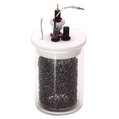 This cell is designed for the complete electrolysis of a solution species and is compatible with electrolyte volumes up to 75 mL (sizes up to 100 mL are available). Typical uses include determination of the number of electrons transferred per molecule, the absolute amount of an analyte, or electrosynthesis of a small amount (typically milligram quantities) of a new material. The cell is also compatible with standard BASi electrodes for voltammetric measurements. The cell kit includes: